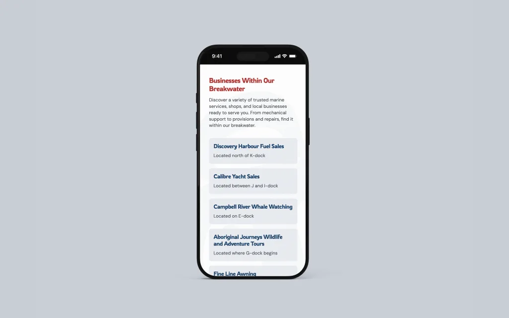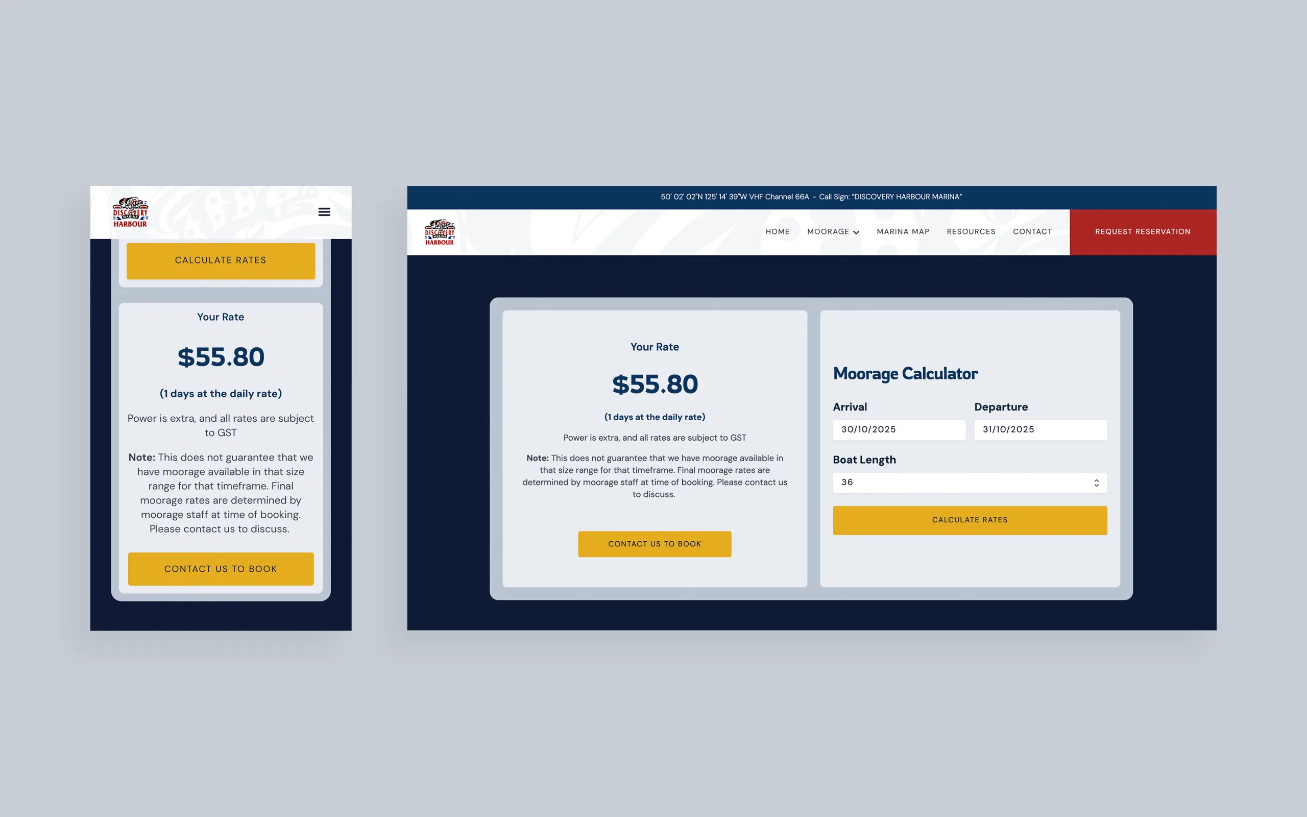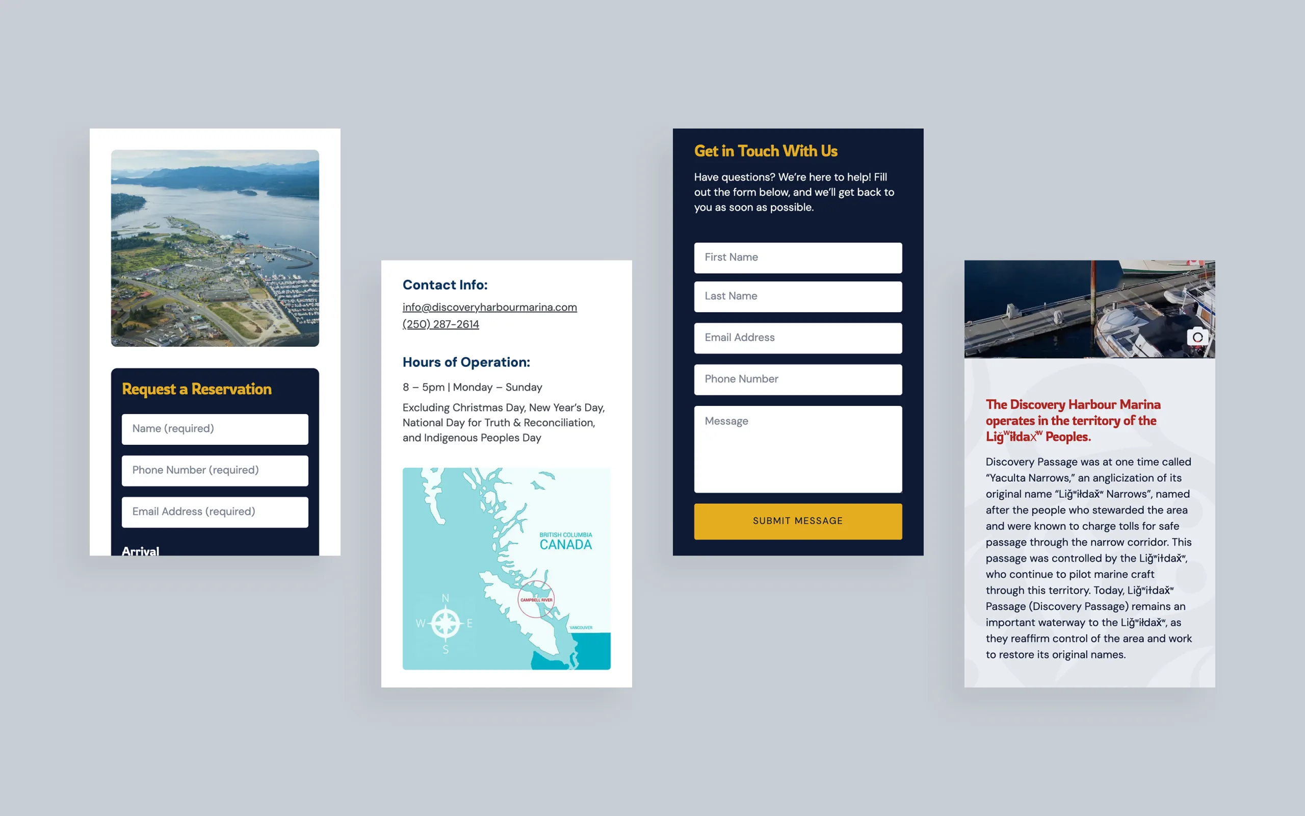 Discovery Harbour Marina is an iconic Campbell River fixture, and they needed a website that reflected their professional, full-service amenities and deep local roots. We focused on a clean, navigable design that immediately showcases their facilities, provides critical visitor information, and integrates essential tools like a Moorage Calculator and an easy Reservation Request form.