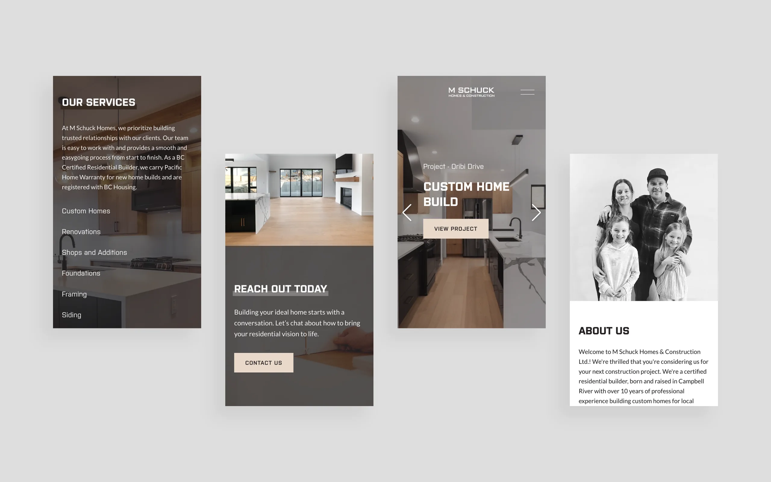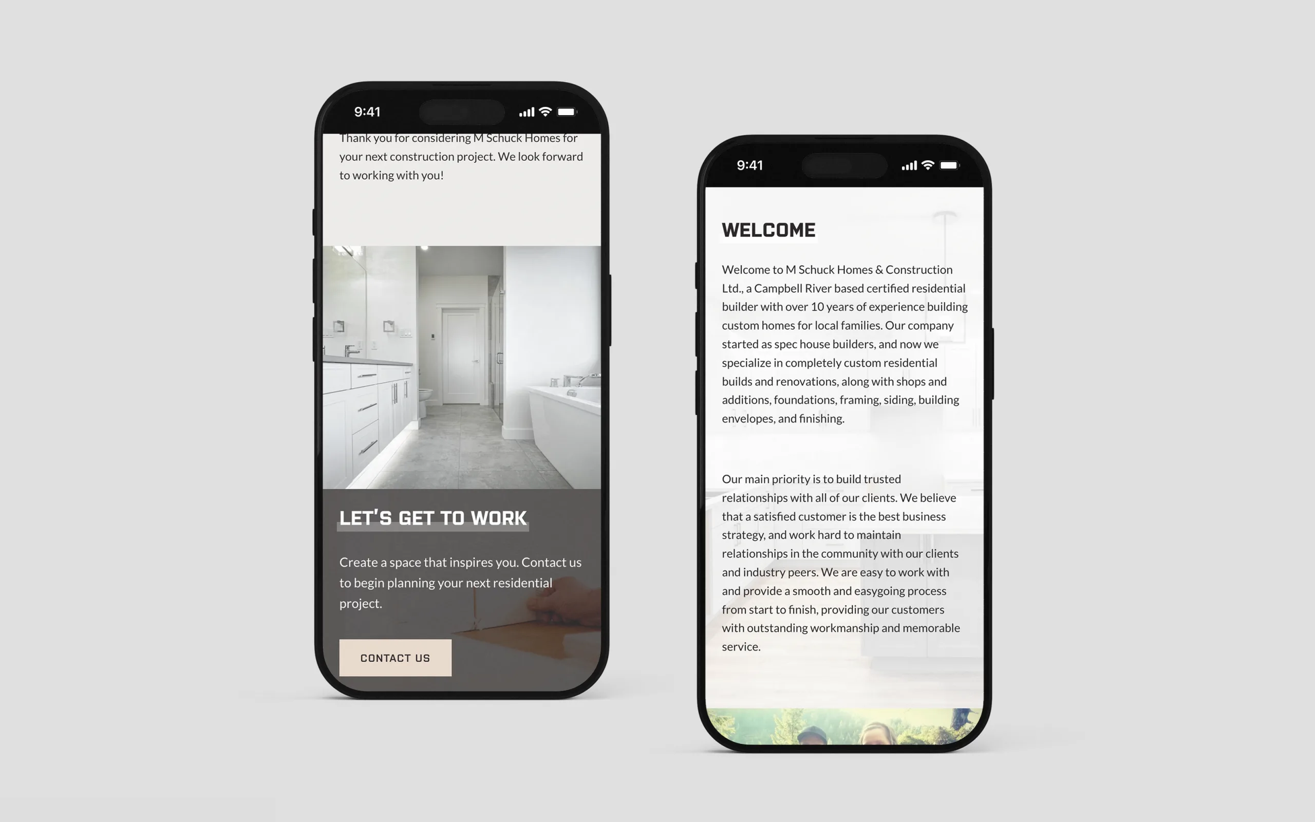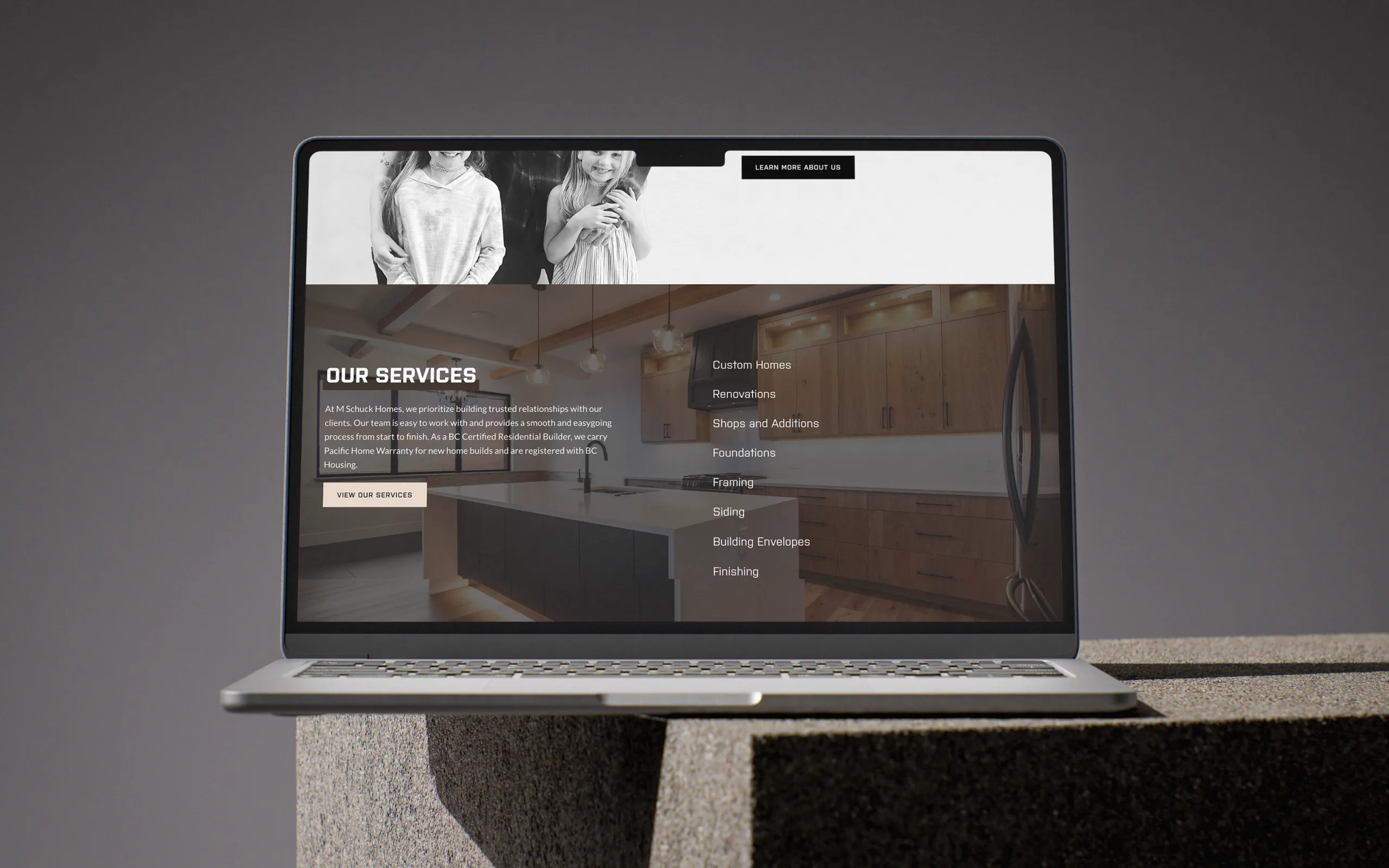 We worked with Mike and Allie of M Schuck Homes & Construction Ltd., a Campbell River-based certified residential builder, to create a new website that grows with their business. Specializing in custom homes, renovations, additions, and full-service construction, their team’s expertise and craftsmanship are showcased through engaging copy and high-quality imagery.